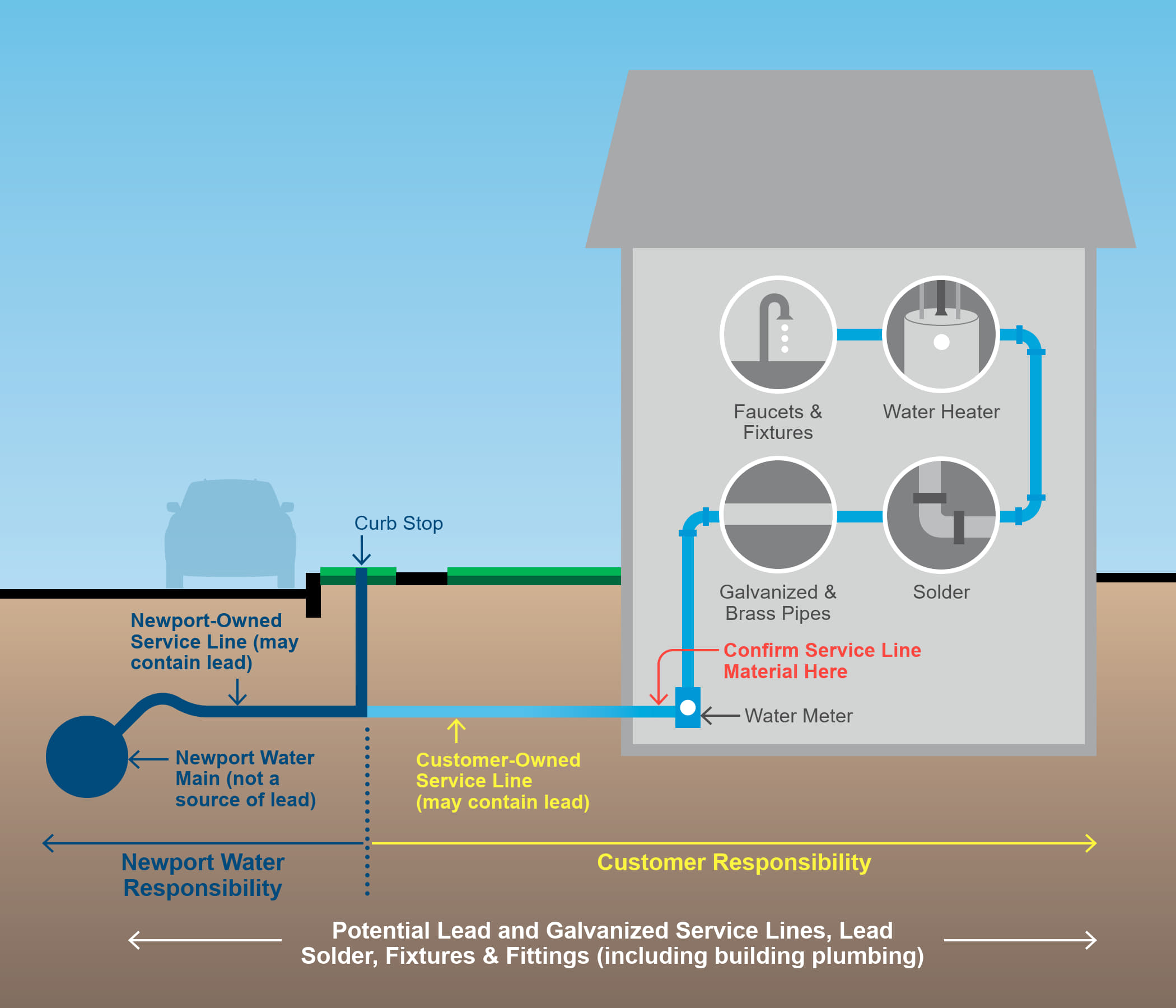 To protect public health and meet new federal and state requirements, NWD has implemented the Lead Service Line Management Program, which will identify and verify the material of every service line in Newport to inform replacement efforts.